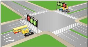 1. Người điều khiển phương tiện nhanh chóng cho xe vượt qua vạch dừng để đi qua đường giao nhau.