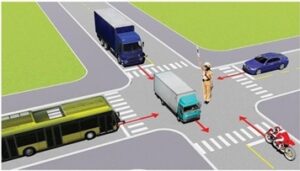 3. Người tham gia giao thông đường bộ ở phía trước người điều khiển giao thông được rẽ phải.