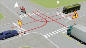Câu 243: Anh (chị) cho biết ý kiến của mình về hành vi đè lên vạch kênh hoá dòng xe để chuyển hướng phương tiện khi tham gia giao thông đường bộ ?